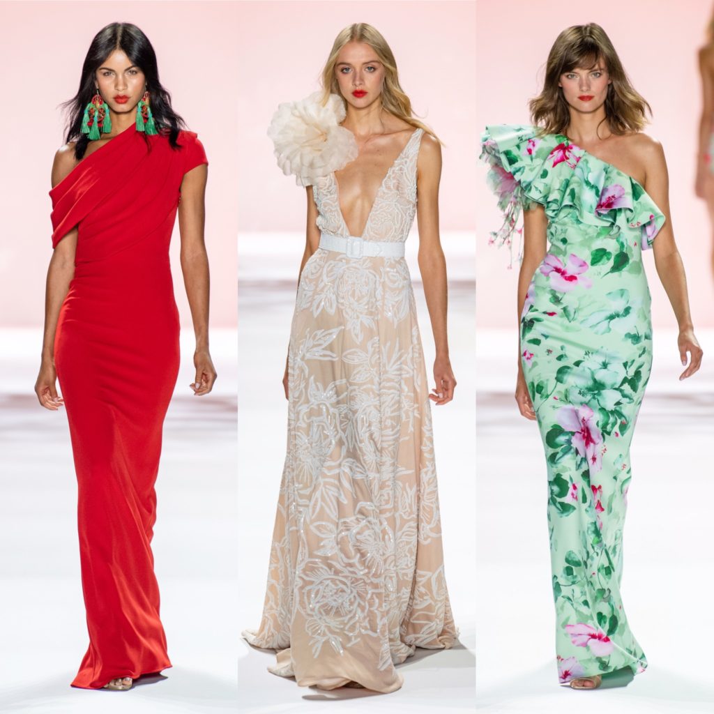 INSPIRED BY: The opulent glamour of the ‘30s and ‘40s. Designers Mark Badgley and James Mischka paid homage to the lifestyles of the rich and famous in Barbados come July. Think Sophia Vergara on vacation at the GoldenEye Resort on Jamaica’s north coast.